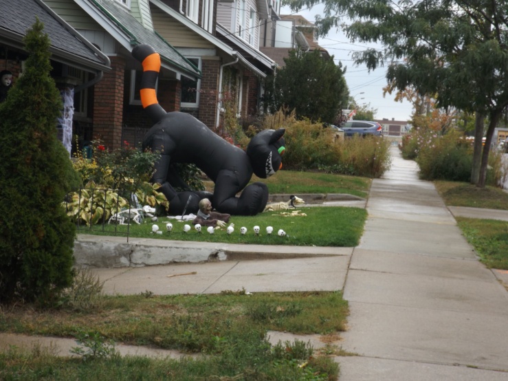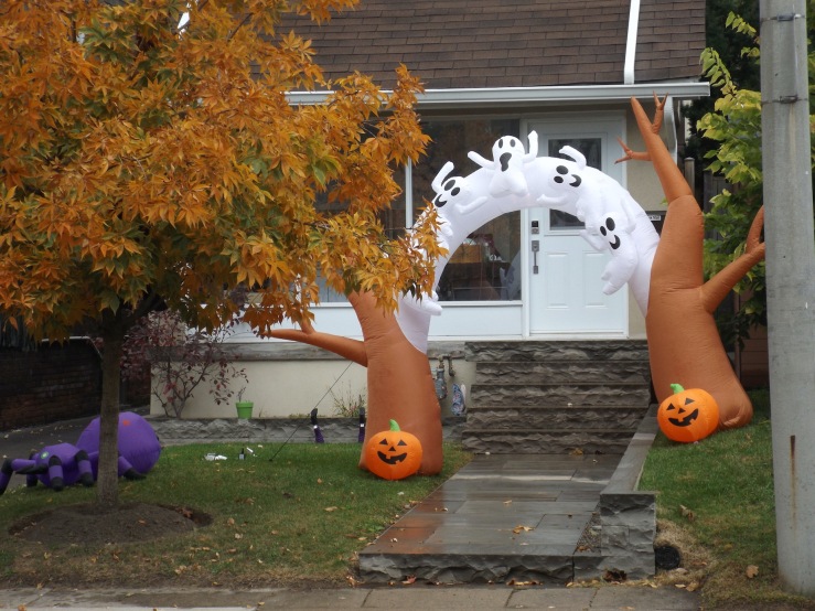 Halloween decorations around my neighbourhood is east end Toronto – some just for fun, some serious statements.